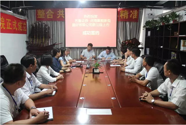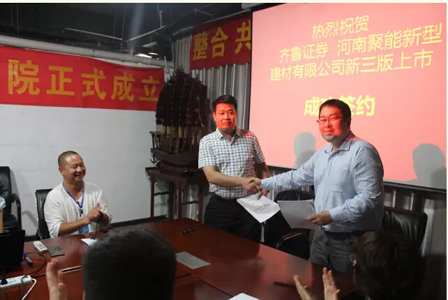 2015年8月1日,經(jīng)過前期的考察、調研,河南聚能新型建材有限公司與齊魯證券正式簽署合作協(xié)議,這標志著聚能集團“新三板”掛牌上市工作正式啟動。